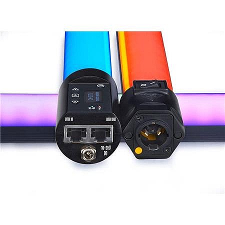 All Rainbow Lamps are equipped with onboard digital interface giving you command of Intensity, Kelvin, Hue & Saturation. Each lamp has a built in Lumen Radio CRMX chip for wireless control. The Rainbow can also be wired to DMX via Cat5 I/O Port. The lamp is Self Ballasted AC input utilizing Neutrik True1 locking connector as well as locking Barrel connector for DC input.