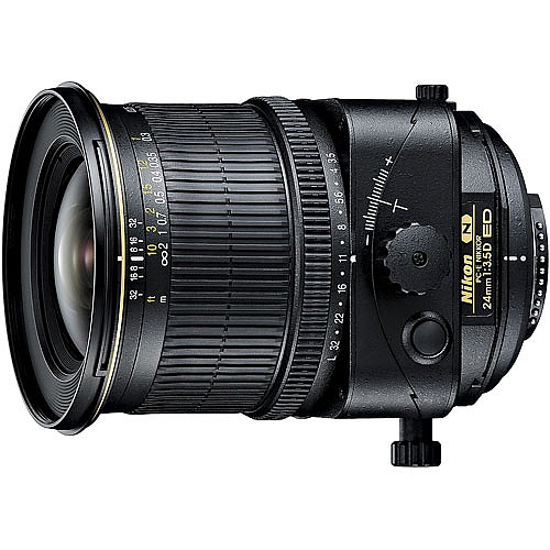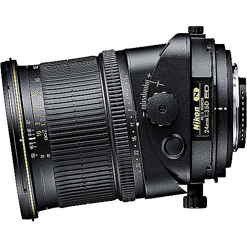 This is an ultra-wide lens with special "Perspective Control" tilt and shift functions, making it ideal for architectural and nature photography. Using tilt and shift correction will help obtain a natural-looking perspective in a distortion-free architectural image. The PC-E 24mm lens is compatible with all digital and 35mm film SLR cameras (in manual mode). With the latest digital cameras (i.e. D3, D700 & D300, and later models), auto-aperture control is possible directly from the camera itself.