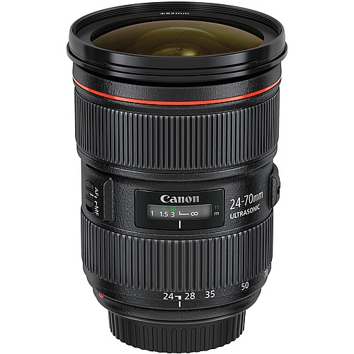 Smaller in size and lighter in weight than its predecessor and featuring a large aperture throughout its focal length, the redesigned EF 24-70mm f/2.8L II USM Zoom Lens from Canon is the latest update to the acclaimed L-Series of EF optics. The lens coatings have been optimized to help ensure exceptional color balance while minimizing ghosting and a ring-type USM and high-speed CPU ensure silent, fast autofocusing.
