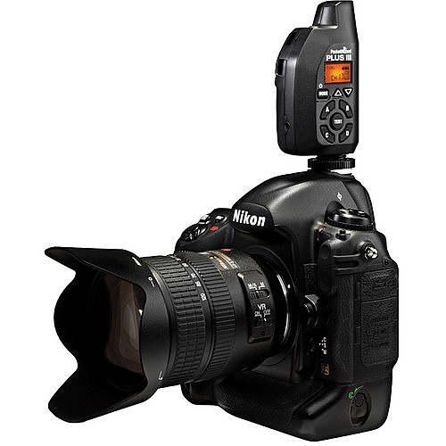 The efficiency of this transceiver is further extended by allowing up to 1640' / 500m transmissions in normal mode, and nearly double with Long Range mode. High speed, continuous shooting is made possible with the High Speed Receive mode, permitting up to 14.5 fps firing at up to 1/250 sec. for focal plane shutter and 1/500 sec. for leaf shutters. The design of the Plus III incorporates a side-view LCD screen and touch pad interface for switching between modes, zones, and settings. It connects to any camera featuring a hot shoe and is also compatible with a variety of cables for linking to lighting and other remote systems.