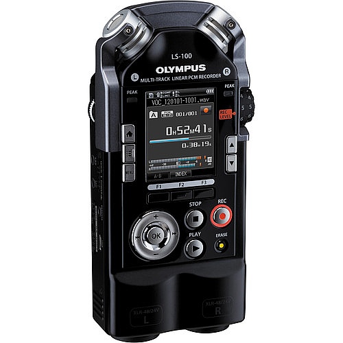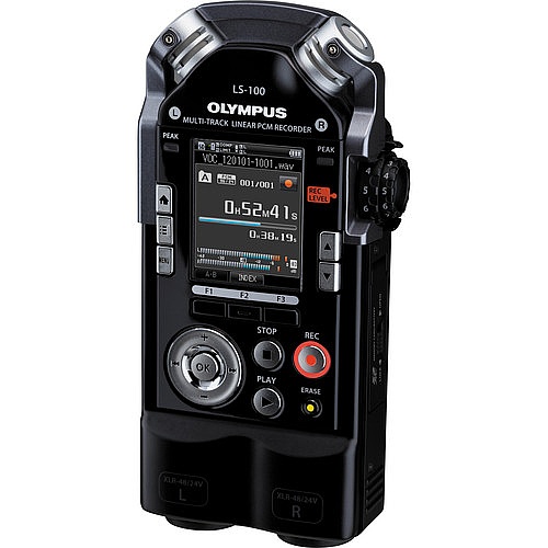The Olympus LS-100 Multi-Track PCM Recorder features high-quality 96kHz / 24-Bit Linear PCM recording, which captures every nuance of every note and syllable with a rich, resonant quality. With this level of digital recording, the LS-100 gives you the ability to make truly colorful, dynamic recordings almost anywhere. It also supports 44.1kHz / 16-Bit Linear PCM and MP3 format as well. MP3 recording is ideal for times when convenience and quantity are more important than quality. The LS-100 is equipped with 4GB of internal Flash memory. It also offers external memory with an SD card slot that supports cards all the way up to a capacity of 64GB.