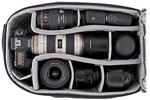 The Think Tank StreetWalker HardDrive offers a strong, functional and convenient way to carry around your photo equipment. The pack is rated to hold a 70-200mm f/2.8 lens with its lens hood attached as well as an additional four lenses plus flash. In addition, a 15" laptop fits neatly in its own separate padded compartment.