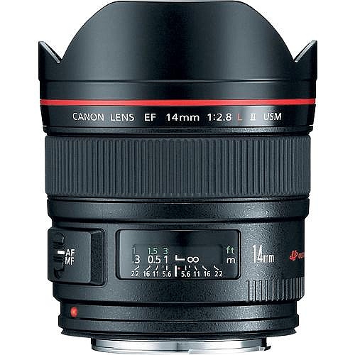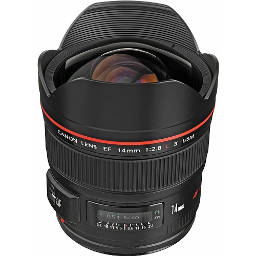 The Canon EF 14mm f/2.8L II USM Autofocus Lens is a bright lens that provides an ultra wide-angle view, and has the shortest focal length in the line-up of L series lenses. Its diagonal angle of view is an impressive 114° - anything larger would be a fisheye lens.
