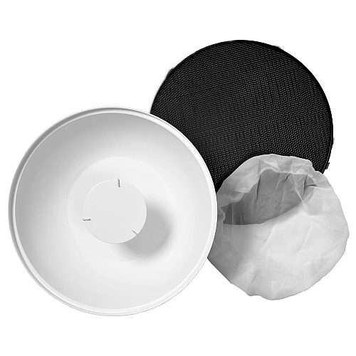 The Softlight Kit from Profoto is a softlight reflector kit with three items: the softlight reflector, a honeycomb grid, and a diffuser. The softlight reflector provides soft but directional light suitable for fashion and portrait photography. It can also be used for numerous lighting applications in architectural, interior design and product photography. The kit includes a honeycomb grid with a 25º beam spread to narrow the light for more precise illumination and a diffuser of 1/3 stop reduction to produce even softer light. The grid clips onto the reflector while the diffuser wraps around and secures itself with a strong elastic band.