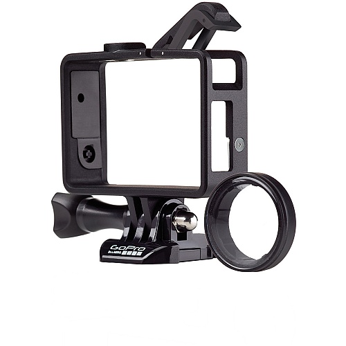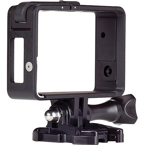 The GoPro Frame is the simplest, lightest way to mount an action camera. It is suitable for applications where size and weight outweigh the protection a housing provides. It features the standard two-prong mounting interface allowing the camera to be mounted on most accessories for GoPro, and will support the attachment of a BacPac accessory.