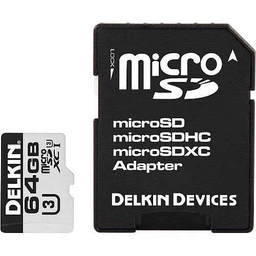• Delkin Devices microSDXC 64 GB 99 MB/s Memory Card with SD adapter