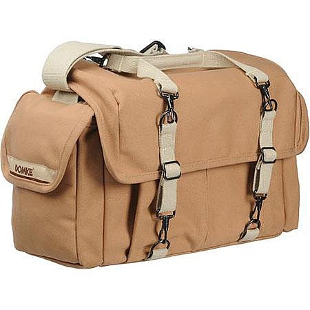 The Domke F-7 Double AF Shoulder Bag is a canvas shoulder bag built to carry two complete professional camera setups. There is room for two big SLR cameras with zoom lenses attached (up to 70-200mm), plus 2 or more additional lenses, flash and accessories. An adjustable belt system works with the Gripper Strap to keep even a fully-loaded F-7 snug against your hip. The bag features an Open cell foam liner sewn into bottom, military-specification hardware, webbing and adjustable closures, fourteen compartments and pockets with three padded inserts.