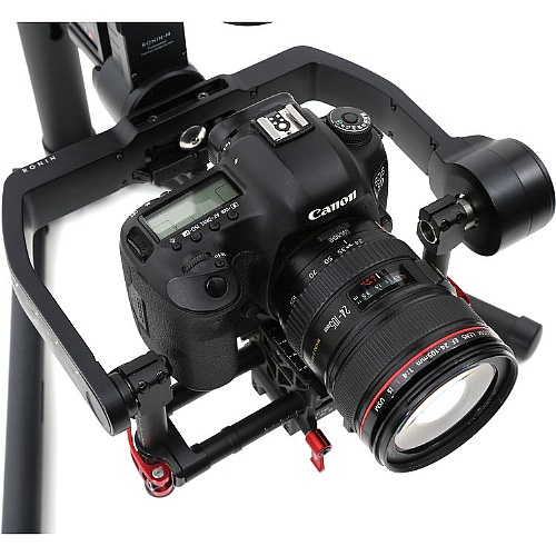 The Ronin-M, 3-Axis Handheld Gimbal Stabilizer is a camera stabilization system designed to give the operator handheld shooting, without hand-shake. Suitable for most camera types and configurations up to 8 pounds, it uses brushless motors working on three axes: one for keeping the horizon level - one for tilt, and one for pan. The system is computer-controlled and features a tilt range of 105° up / 165° down plus a roll range of ±110°. Furthermore, the system can be setup for precise camera moves and stability correction against even very fine movements.