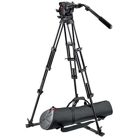 This Manfrotto 526,545GBK Professional Video Tripod System is targeted toward the heavy-duty ENG and EFP video market with the ability to support top loads of 35 lbs. It comes with the 526 Professional Fluid Video Head which features a replaceable and removable pan arm rosette and large rubber padded knobs for a better grip. The precise fluid drag system has low, medium and high settings, plus zero drag for snap-pans and tilts