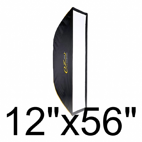 The Glow EZ Lock 12X56" QUICK SOFTBOX takes the EZ Lock feature concept to the traditional lightbank design and scores! The extreme rectangular shape features flattering, soft and rich color lighting with all the great advantages of plume softbox quality with an unbeatable safe and sure EZ positive and lock system. No more clumsy construction, fumbling with flex resistant rods or struggling in frustration for careful alignment of speedring holes.