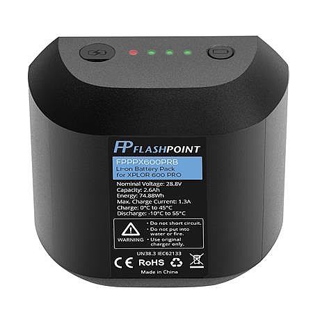 The Flashpoint Battery Power Pack Unit for the XPLOR 600Pro TTL Monolight is a impressive internal and interchangeable high energy 28.8-volt Lithium Ion 2600mAh battery, capable of over 370 full power flash bursts on a single charge, with the extra energy to oblige the powerful LED modeling lamp.