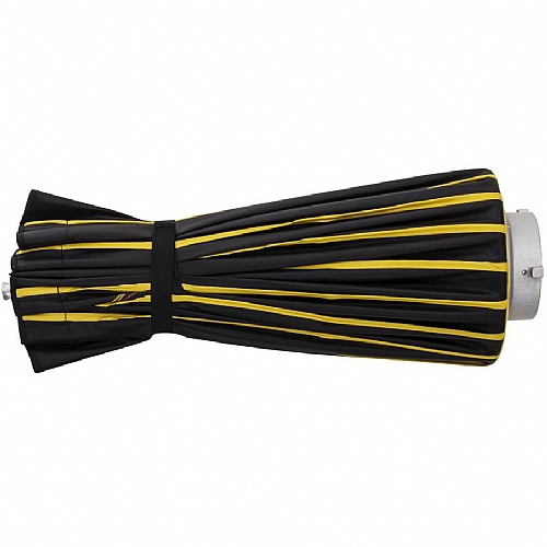 The GLOW EZ LOCK 25" SILVER BEAUTY DISH is an ingenious portable version of the light modifier famous for striking fashion and portraiture images showcasing the incomparable safe and sure EZ Lock system. No more clumsy construction, fumbling with flex resistant rods or struggling in frustration for careful alignment of speedring holes. The 16 ribbed dish opens up and closes down, 'umbrella style.' The ingenious self-catch EZ Lock surrounds a thick center shaft, providing a comfortable place for your fingers topush-lock the mechanism open, and a generous wide button to unlock-release and close the beauty dish painlessly. The quick-to-setup quasi-parabola saucer like assembly has all the advantages of the beauty dish allure without the disadvantages of damage that a metallic dish confronts during location travel and is free of any of the drawbacks of a delicate bendable dish. This folding unit ismade for the road, however, with sturdy aluminum support rods for structural stability and extraordinary fabric strength.