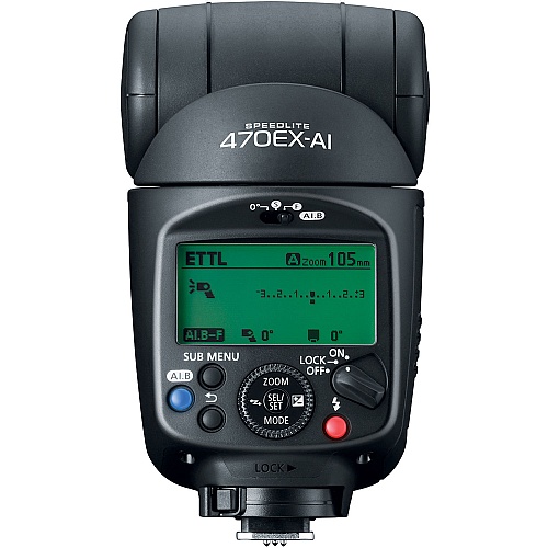 Beyond its distinct automated capabilities, the 470EX-AI is also distinguished by its apt flash specs, including E-TTL/E-TTL II compatibility, a guide number of 154' at ISO 100 and 105mm, a zoom head with coverage from 24-105mm, and a pull-out diffuser to widen this coverage to 14mm. Manual stepless adjustment over bounce is possible with a tilting range up to 120° along with +/- 180° rotation, and off-camera triggering is possible using the optical slave mode.