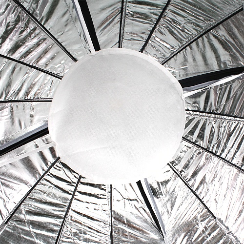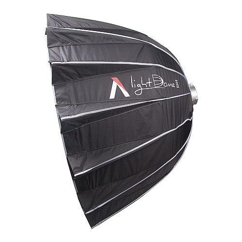 Suitable for portraits, head shots, interviews, and fashion, the 34.8" Light Dome II from Aputure is a 16-sided modifier that offers quality of light options and wide compatibility with Aputure lights, as well as those of the many other manufacturers that use the popular Bowens front accessory mount. The structure of the Light Dome II is fortified by its 16 durable steel support rods, while its silver interior maximizes your light source's output. Its 24" depth produces a focused light with directional control that can be narrowed further for selective lighting with the included 40° fabric grid. Aputure provides a removable inner diffuser and both 1.5-stop and 2.5-stop front diffusers that you can use individually or all at once for softness and contrast options. The supplied gel filter holder also offers creative color options. Any way you use it, you'll find that the Light Dome II renders soft, flattering light with a wraparound quality and produces round, natural-looking catchlights in the eyes of your subject.