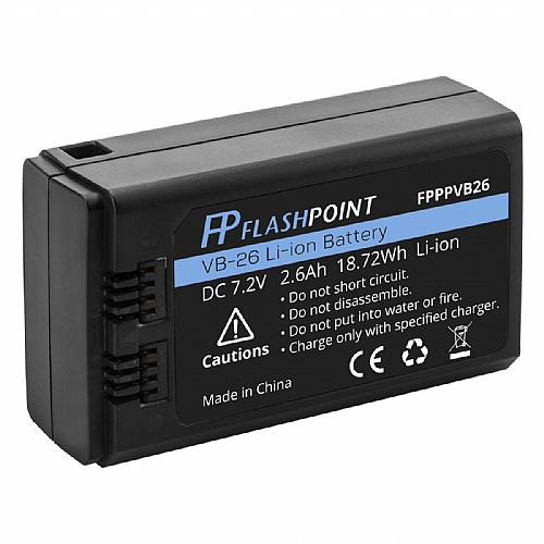 The Flashpoint VB-26 is the rechargeable Lithium-Ion polymer power cell for the Zoom Li-on X and Zoom Li-on III Speedlights. The new 7.2V, 2.6mAh, 18.72Wh, Li-ion Battery is comprised of two 18650 cells, with a proven track record for performance, reliability, and longevity. The packs can be recharged in about 3.5hours, using the VC-26 USB Charger. With an estimated 480 full power shots inside, there isn't much room for shorts.