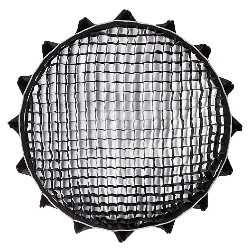 Bundled with a fabric honeycomb grid add-on that helps control the light spill spread by 40 degrees, and suitable for portraits, head shots, interviews, and fashion, the 34.8" Light Dome II from Aputure is a 16-sided modifier that offers quality of light options and wide compatibility with Aputure lights, as well as those of the many other manufacturers that use the popular Bowens front accessory mount. The structure of the Light Dome II is fortified by its 16 durable steel support rods, while its silver interior maximizes your light source's output. Its 24" depth produces a focused light with directional control that can be narrowed further for selective lighting with the included 40° fabric grid. Aputure provides a removable inner diffuser and both 1.5-stop and 2.5-stop front diffusers that you can use individually or all at once for softness and contrast options. The supplied gel filter holder also offers creative color options.