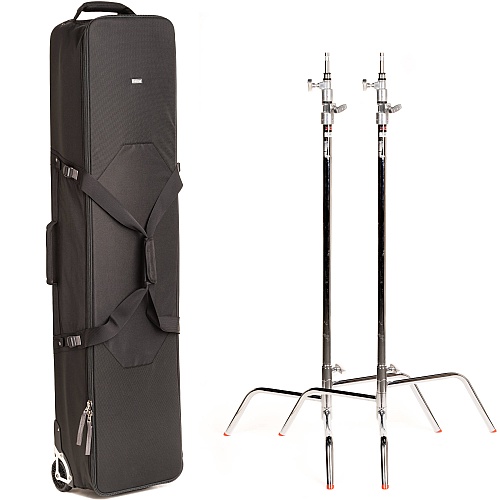 We are proud to offer our c-stand twin kit, with roller case, for those of you who need multiple, heavy duty stands, but want an easy way to transport them.