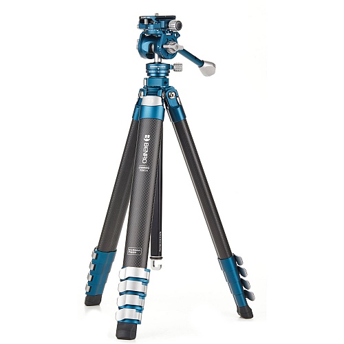 The CyanBird Carbon Fiber Tripod with FS20PRO 2-in-1 Pan Head from Benro is a travel-friendly tripod that can go wherever your creativity takes you. Boasting a sleek ocean blue design, this lightweight and versatile tripod is perfect for photo, video, and content creation. It has a load capacity of 9.92 lb and extends to a height of 50.8", yet easily folds down to just 7.2", making it a great fit for any backpack or camera bag. The lightweight carbon fiber legs feature a flatter shape than traditional round legs to provide rigidity while reducing size.
