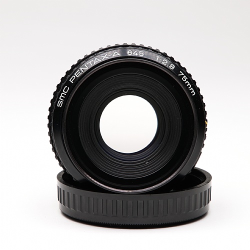 The Pentax 75mm f2.8 SMC Pentax-A is a standard prime lens for the Pentax 645 system. The "Pentax-A" designation denotes that this lens has electronic contacts for relaying data to a Pentax 645, 645N, or 645N II camera body.
