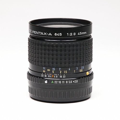 Equivalent to approximately a 28mm lens in the 35mm format the 45 f2.8 SMC A gives your Pentax 645 a new perspective on shooting. Pentax's exclusive seven-layer Super-Multi-Coating (SMC) reduces the reflection and flare ratio to an amazingly low 0.2% per lens surface for bright, clear, high resolution images that will look good from any angle.