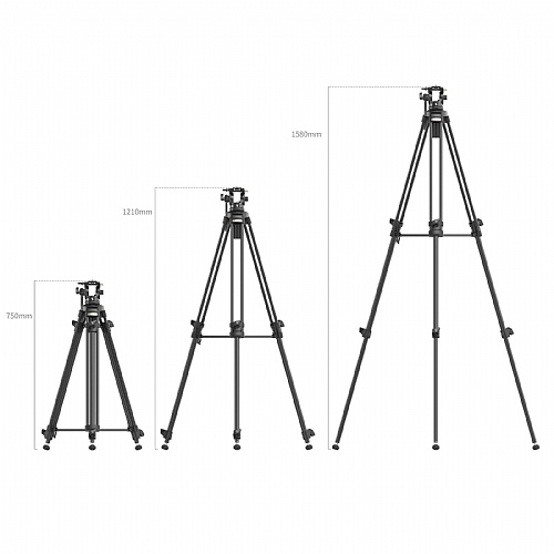 Designed for run-and-gun videographers with lightweight camera rigs, the AD-50 Lightweight Carbon Fiber Video Tripod System from SmallRig includes carbon fiber tripod legs and a video head for a durable and portable tripod support system. Altogether, the system has a 13.2 lb load capacity suited for smaller camera builds. The tripod features three leg sections with a height adjustment range of 28.7 to 64.1". It folds down to 31.1" for simplified transport in the included carrying case.